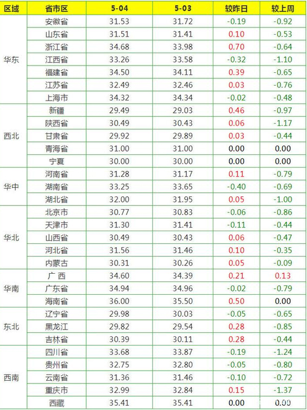 - 2020-05-03 今日全國各產區雞蛋價格,五一后基本平穩