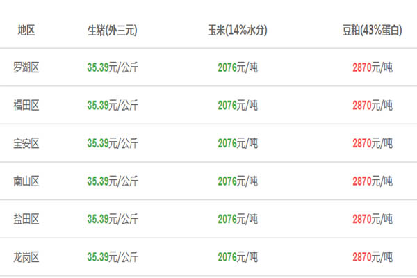 今日全國生豬均價較昨日是跌了的,均價為32.43元/公斤,每公斤跌了0.13元。但是廣東省卻結束了三連跌,今日微漲0.01元/公斤,所以廣東生豬均價為35.42元/公斤。那么深圳市的外三