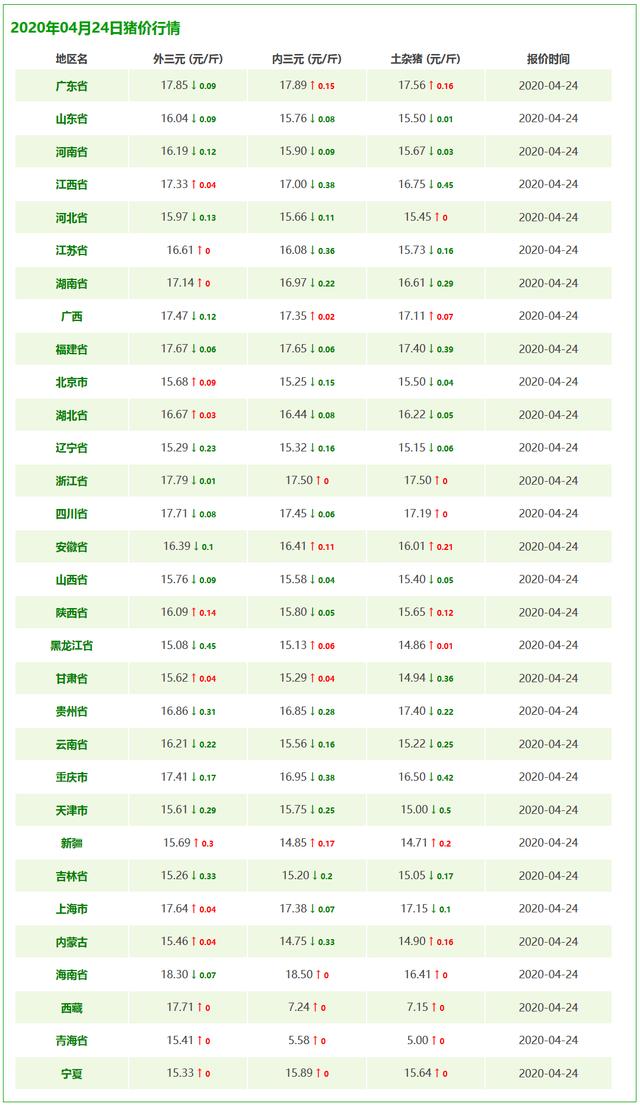 - 2020-04-24 今日全國生豬價格表,有跌有漲幅度很小