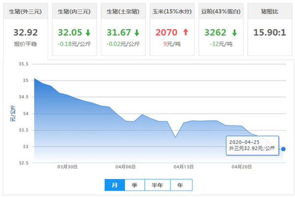 - 2020-04-25 今日全國外三元生豬平均價格為多少?附走勢圖
