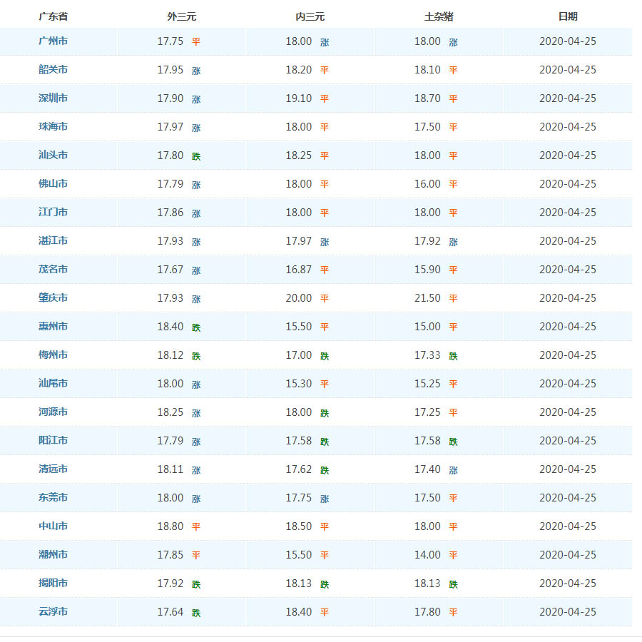 今日廣東省各市生豬價格行情表,漲多跌少!
