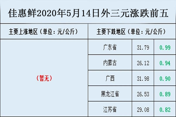 很直觀的,我們看到了沒有上漲的省市,而下跌最多的地區就是我們本省,廣東省,較昨日下跌了0.99元/公斤。