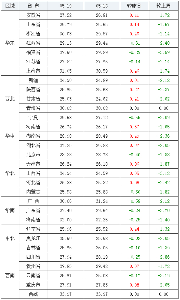2020-05-19 今日豬肉價格多少錢?內附外三元生豬價格漲跌表